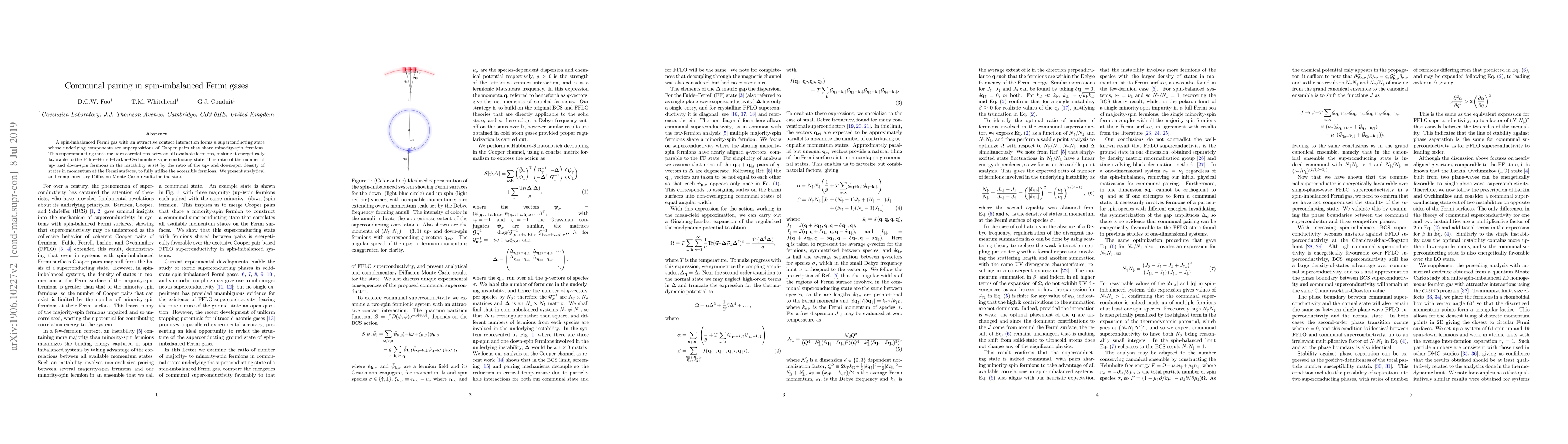 This paper investigates a spin-imbalanced Fermi gas with attractive interactions, revealing a superconducting state formed by communal pairing of Cooper pairs that include minority-spin fermions. This state is energetically favorable compared to the Fulde-Ferrell-Larkin-Ovchinnikov state and utilizes the spin ratio determined by the density of states at the Fermi surfaces.