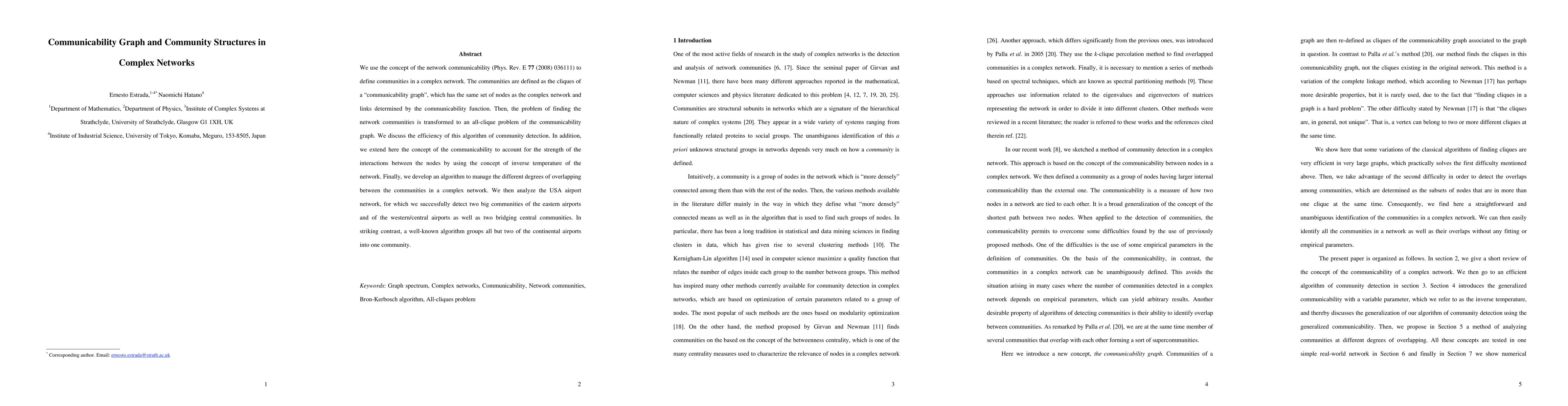 This paper proposes a novel method to define and detect communities in complex networks using network communicability and the all-clique problem of a communicability graph. It also introduces an algorithm to handle overlapping communities and applies it to the USA airport network, successfully identifying distinct eastern and western/central airport communities.