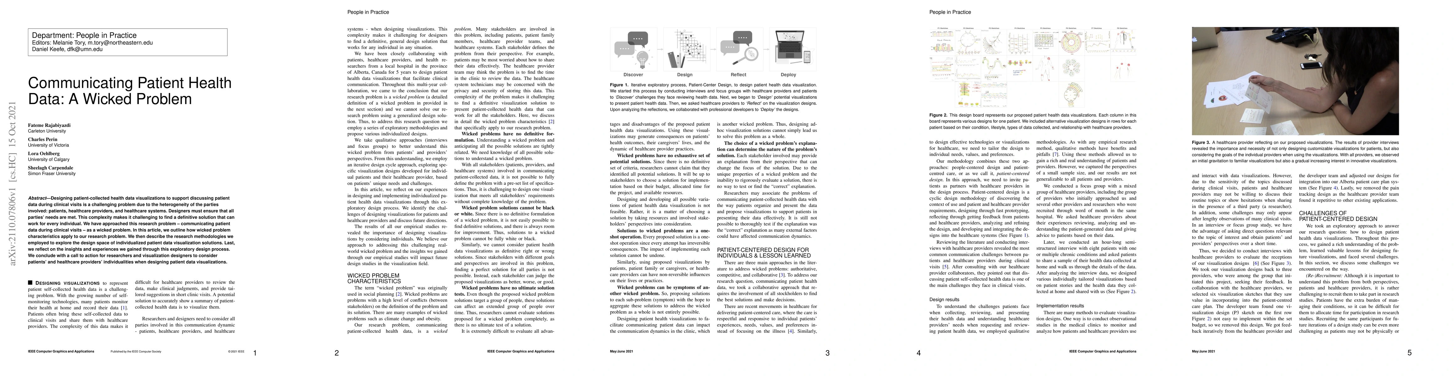This paper explores the complexities of designing patient health data visualizations for clinical discussions, framing it as a "wicked problem" due to the diverse needs of patients, providers, and healthcare systems. The authors outline their research methodologies and insights from an exploratory design process, urging designers to consider individual differences when creating these visualizations.