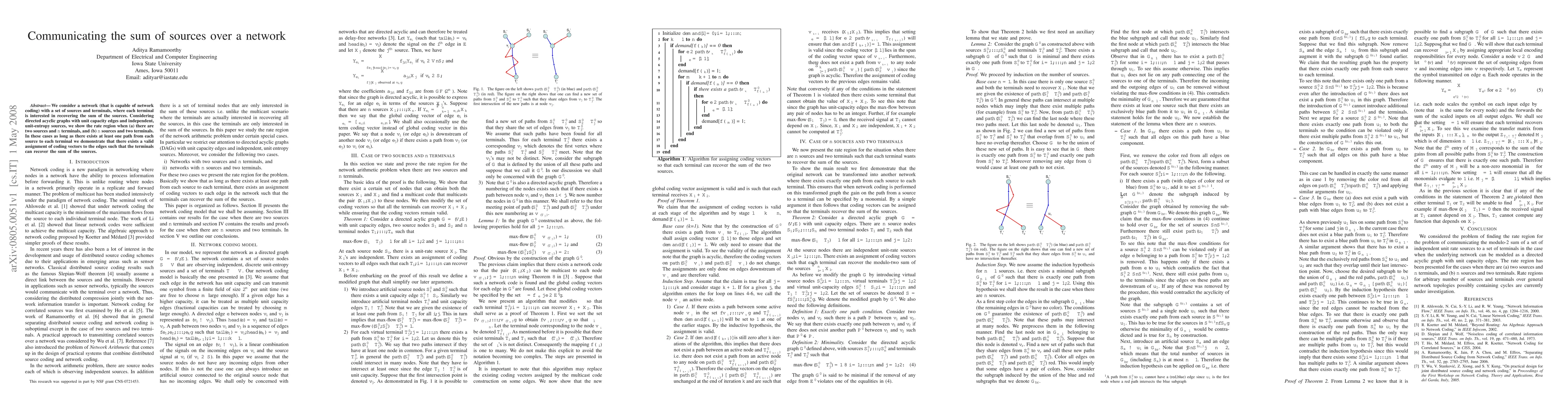 We consider a network (that is capable of network coding) with a set of sources and terminals, where each terminal is interested in recovering the sum of the sources. Considering directed acyclic graphs with unit capacity edges and independent, unit-entropy sources, we show the rate region when (a) there are two sources and $n$ terminals, and (b) $n$ sources and two terminals. In these cases as long as there exists at least one path from each source to each terminal we demonstrate that there exists a valid assignment of coding vectors to the edges such that the terminals can recover the sum of the sources.