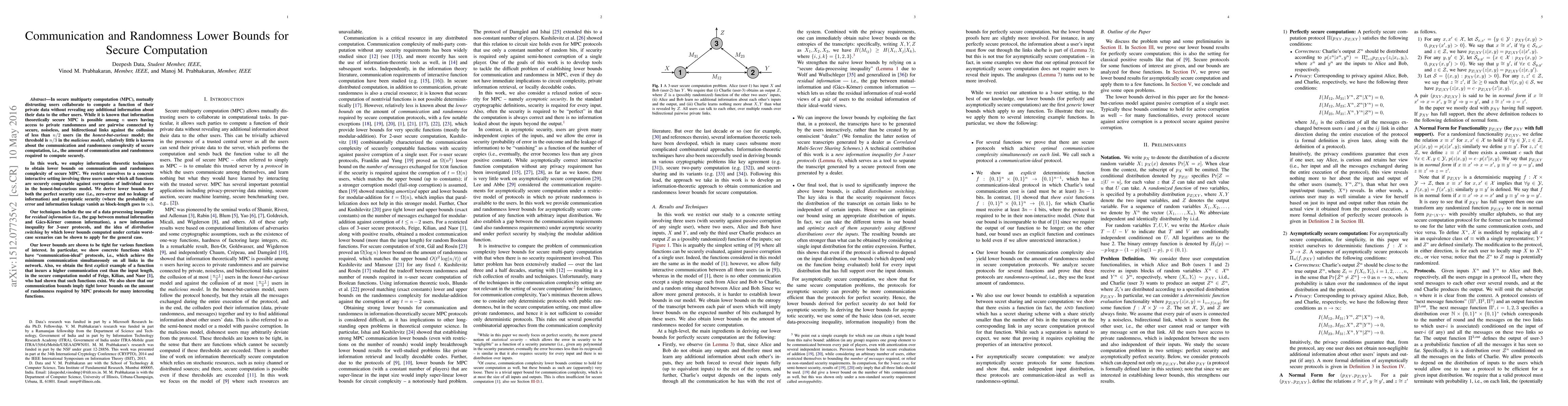 In secure multiparty computation (MPC), mutually distrusting users collaborate to compute a function of their private data without revealing any additional information about their data to other users. While it is known that information theoretically secure MPC is possible among $n$ users (connected by secure and noiseless links and have access to private randomness) against the collusion of less than $n/2$ users in the honest-but-curious model, relatively less is known about the communication and randomness complexity of secure computation. In this work, we employ information theoretic techniques to obtain lower bounds on the amount of communication and randomness required for secure MPC. We restrict ourselves to a concrete interactive setting involving 3 users under which all functions are securely computable against corruption of a single user in the honest-but-curious model. We derive lower bounds for both the perfect security case (i.e., zero-error and no leakage of information) and asymptotic security (where the probability of error and information leakage vanish as block-length goes to $\infty$). Our techniques include the use of a data processing inequality for residual information (i.e., the gap between mutual information and G\'acs-K\"orner common information), a new information inequality for 3-user protocols, and the idea of distribution switching. Our lower bounds are shown to be tight for various functions of interest. In particular, we show concrete functions which have "communication-ideal" protocols, i.e., which achieve the minimum communication simultaneously on all links in the network, and also use minimum amount of randomness. Also, we obtain the first explicit example of a function that incurs a higher communication cost than the input length in the secure computation model of "Feige, Kilian, and Naor [STOC, 1994]", who had shown that such functions exist.