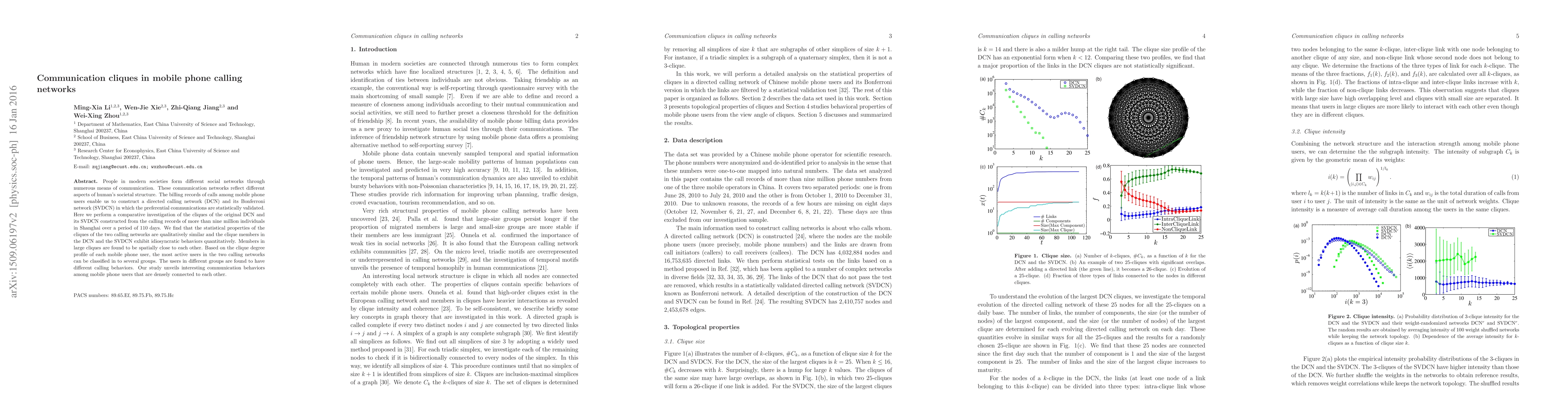 The study constructs directed calling networks (DCN) and their statistically validated Bonferroni networks (SVDCN) from mobile phone call records to investigate cliques and their properties.