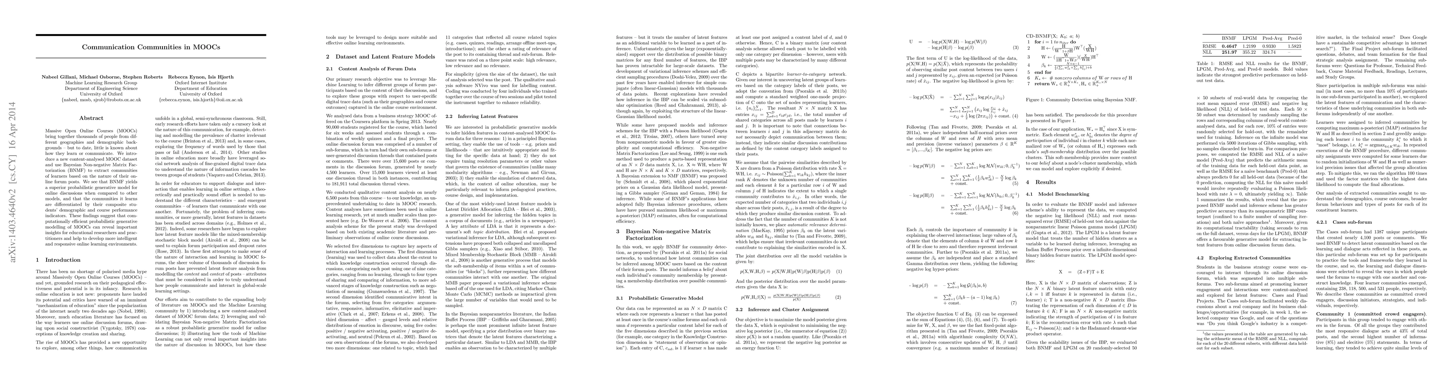 This research analyzes MOOC (Massive Open Online Course) communication using a new dataset and Bayesian Non-negative Matrix Factorization (BNMF). BNMF outperforms other models in identifying learner communities based on forum posts, revealing demographic and performance differences among these groups. These findings suggest potential for creating smarter, adaptive online learning environments.