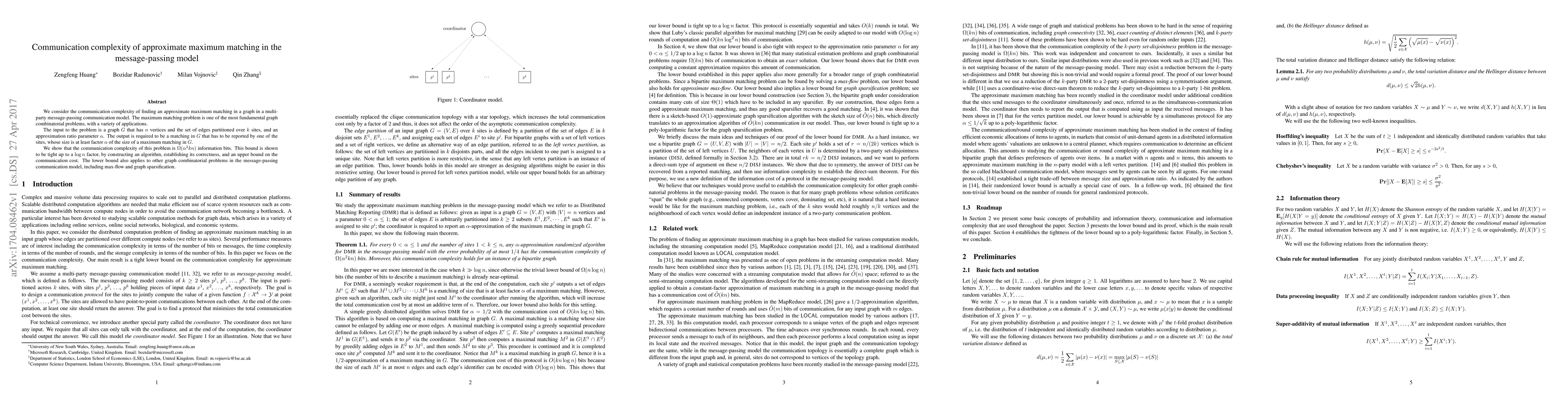 This paper explores the communication complexity of finding an approximate maximum matching in a graph distributed across multiple parties in a message-passing model. It establishes a lower bound of $\Omega(\alpha^2 k n)$ information bits and shows that this bound is tight up to a $\log n$ factor.