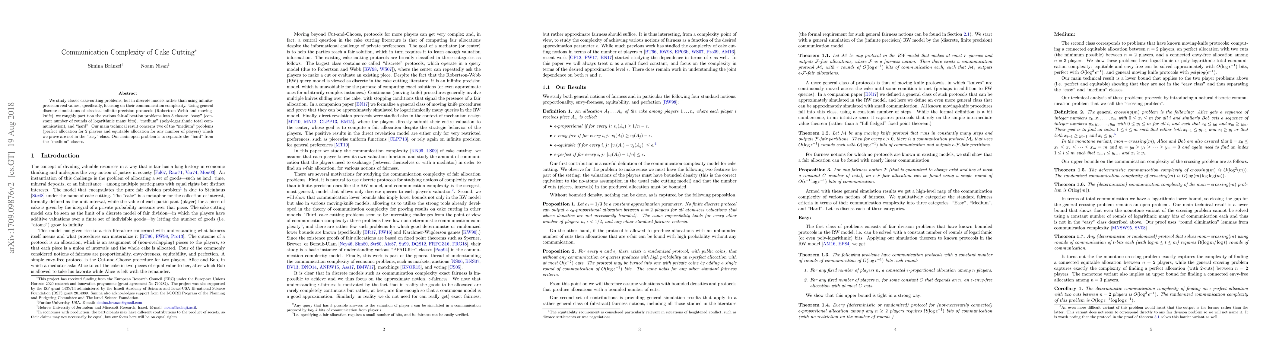This paper investigates the communication complexity of discrete cake-cutting protocols, classifying fair-allocation problems into "easy," "medium," and "hard" categories. It proves that perfect allocation for two players and equitable allocation for any number of players fall into the "medium" class, and poses an open problem to distinguish "hard" from "medium" problems.