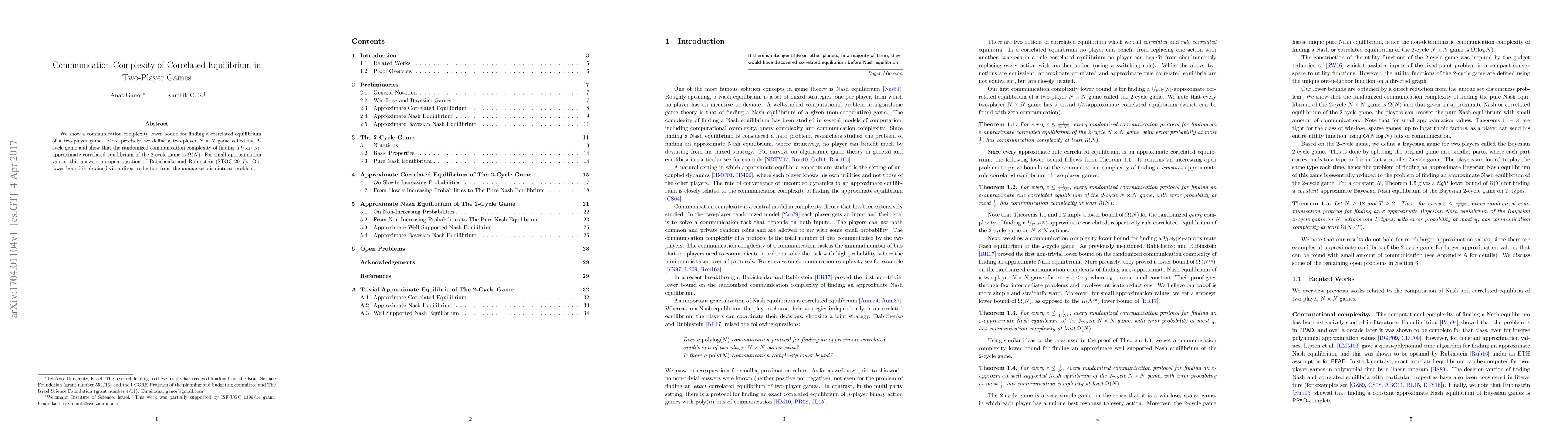 A new study sets a lower bound for finding a correlated equilibrium in two-player games, showing that communication complexity grows linearly with the game size.