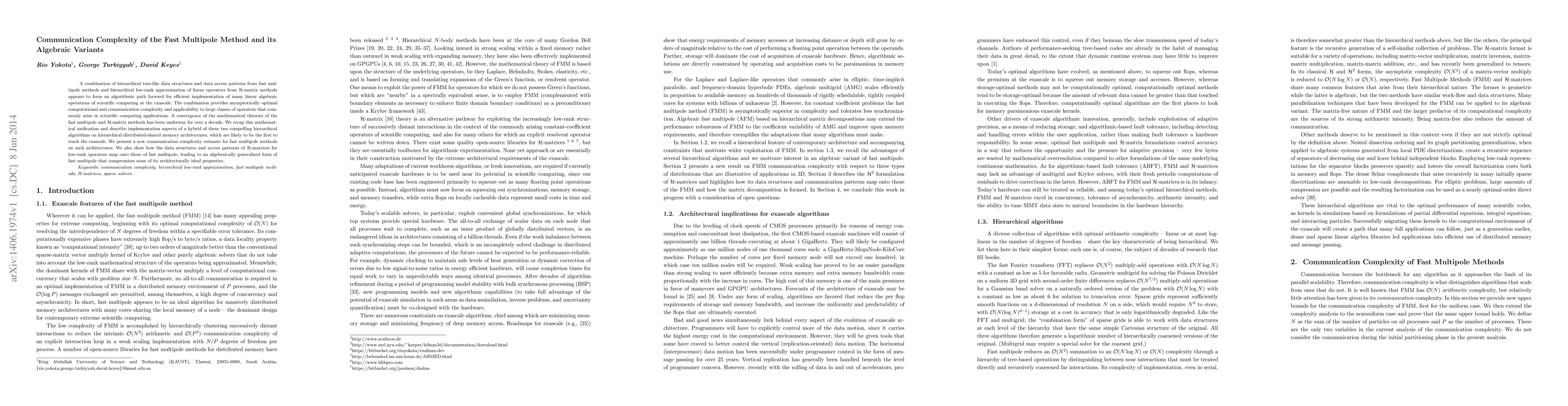 A combination of hierarchical tree-like data structures and data access patterns from fast multipole methods and hierarchical low-rank approximation of linear operators from H-matrix methods appears to form an algorithmic path forward for efficient implementation of many linear algebraic operations of scientific computing at the exascale. The combination provides asymptotically optimal computational and communication complexity and applicability to large classes of operators that commonly arise in scientific computing applications. A convergence of the mathematical theories of the fast multipole and H-matrix methods has been underway for over a decade. We recap this mathematical unification and describe implementation aspects of a hybrid of these two compelling hierarchical algorithms on hierarchical distributed-shared memory architectures, which are likely to be the first to reach the exascale. We present a new communication complexity estimate for fast multipole methods on such architectures. We also show how the data structures and access patterns of H-matrices for low-rank operators map onto those of fast multipole, leading to an algebraically generalized form of fast multipole that compromises none of its architecturally ideal properties.