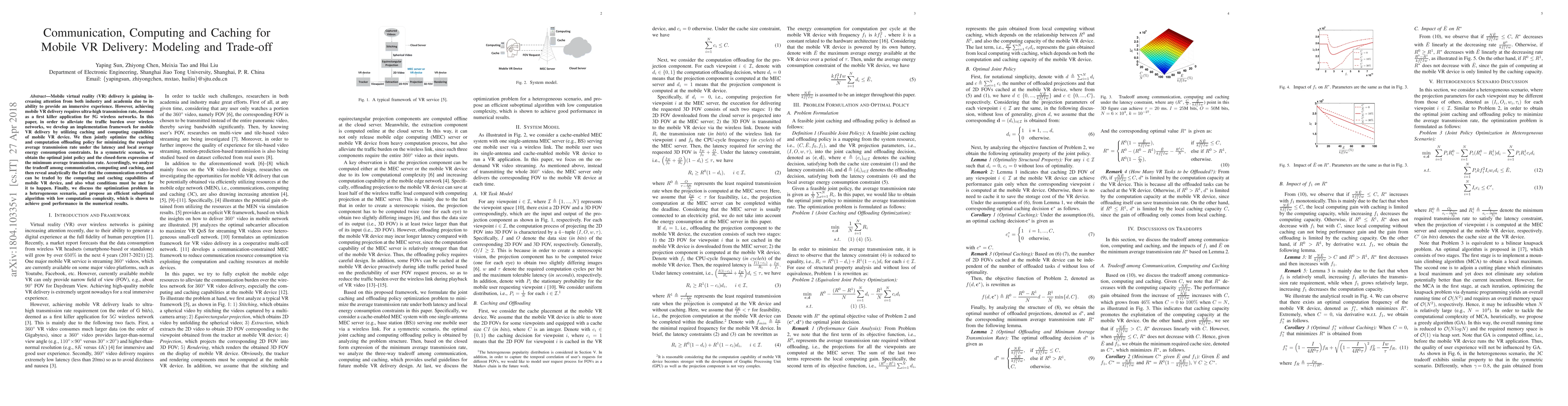 This paper develops a framework for mobile VR delivery using caching and computing to reduce wireless network traffic. It optimizes caching and computation offloading to minimize transmission rates while considering latency and energy constraints, revealing trade-offs between communication, computing, and caching. An efficient suboptimal algorithm is proposed for heterogeneous scenarios.