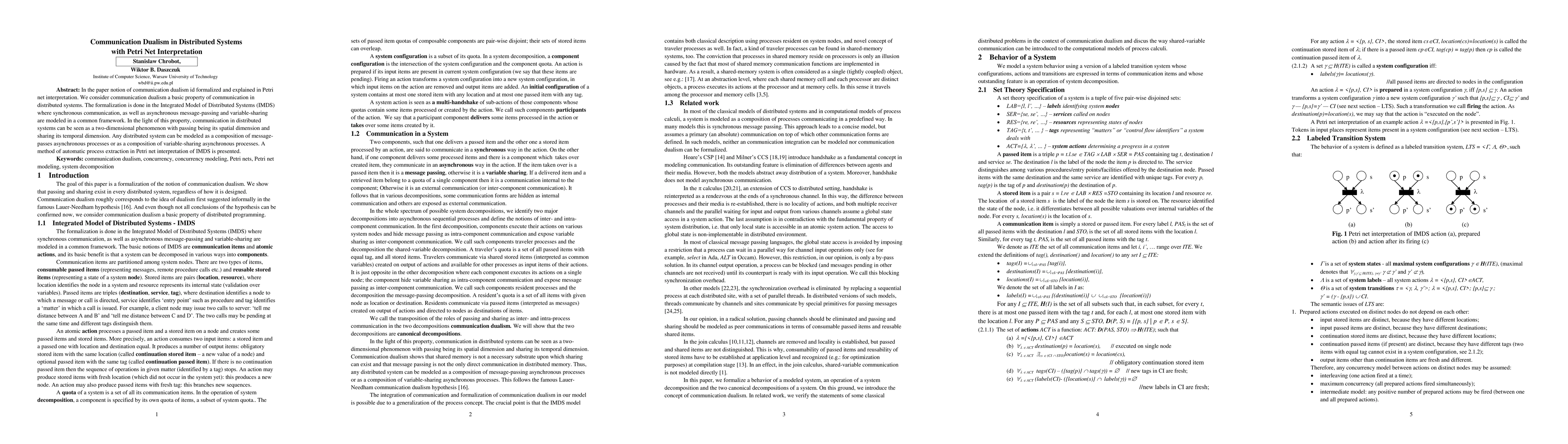 This paper formalizes the concept of communication dualism in distributed systems using Petri nets, viewing communication as a two-dimensional phenomenon with asynchronous message-passing and variable-sharing. It introduces a method for automatic process extraction within the Integrated Model of Distributed Systems (IMDS).