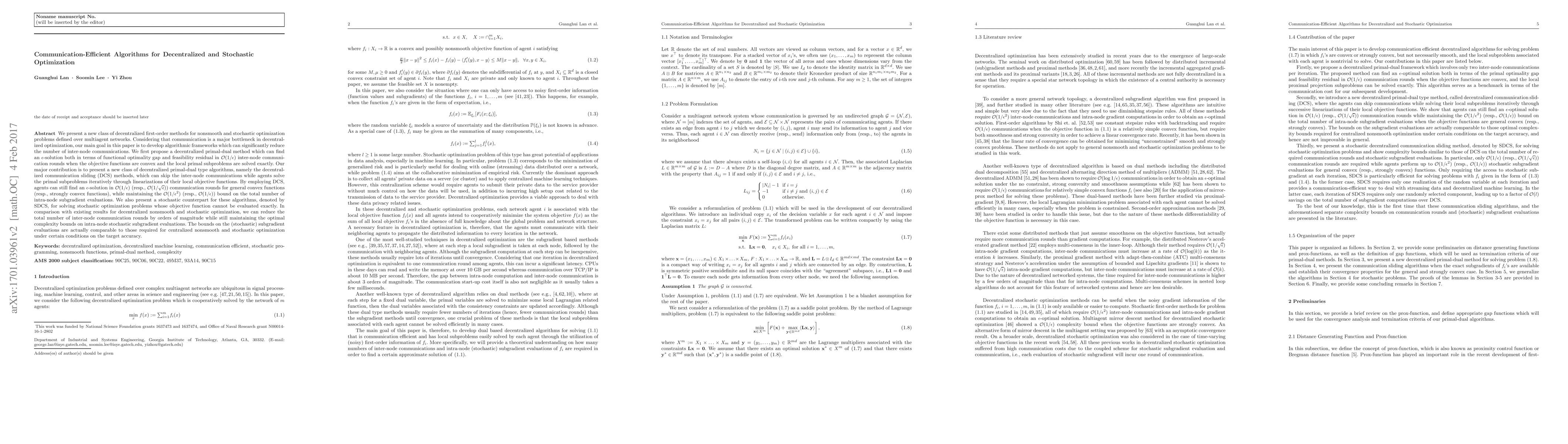 This paper introduces decentralized first-order optimization methods that significantly reduce inter-node communication in multiagent networks. The proposed decentralized communication sliding (DCS) methods achieve $\epsilon$-solutions with optimal complexity bounds, while minimizing communication rounds by skipping inter-node communications during iterative local optimization.