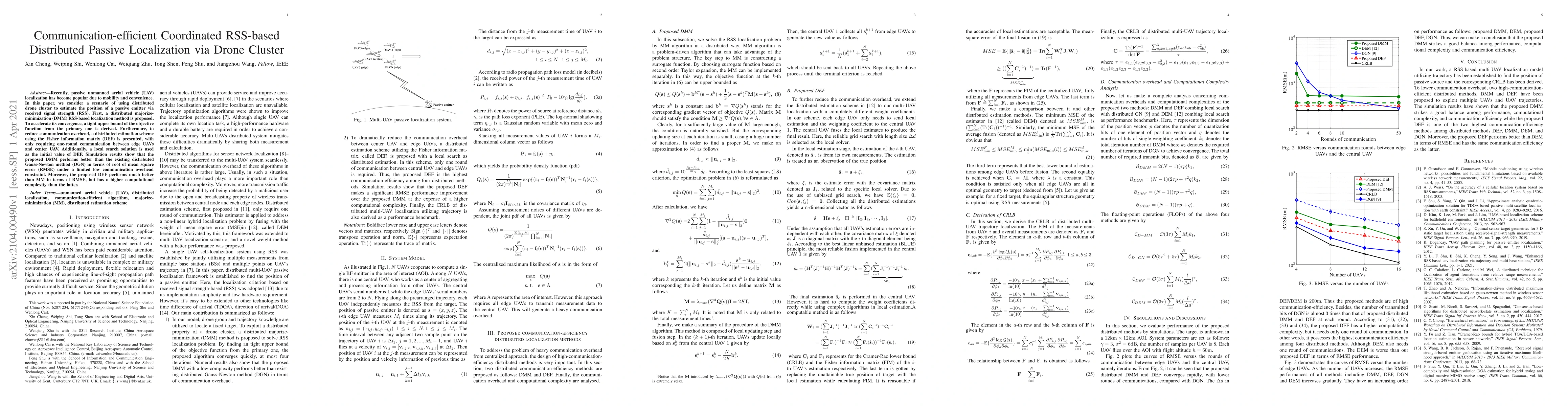 A new method for drone localization using received signal strength is proposed, which reduces communication overhead and achieves better performance than existing methods.