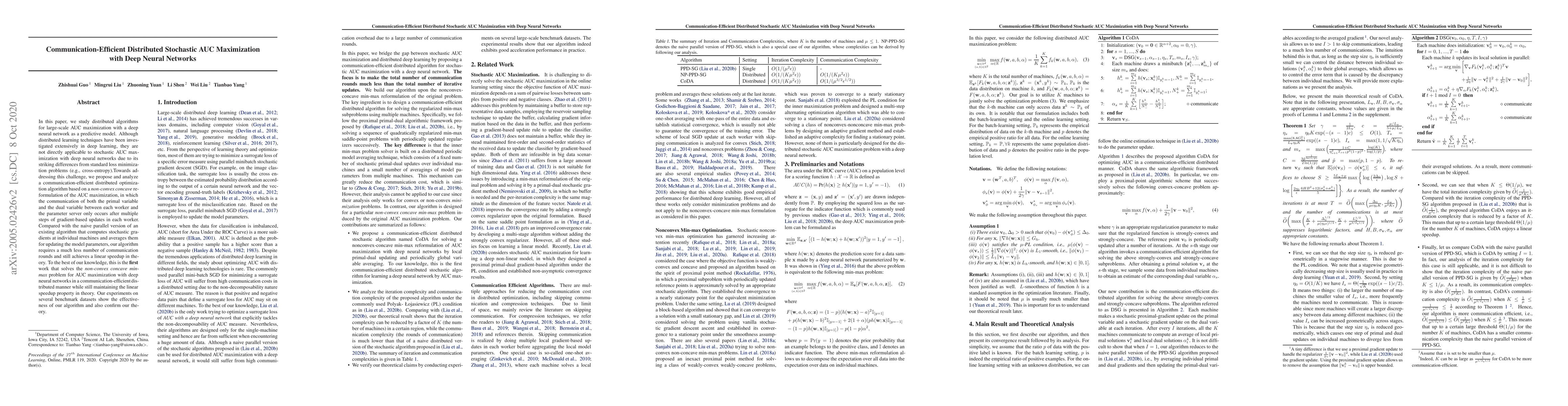 This paper proposes a novel communication-efficient distributed optimization algorithm for maximizing AUC with deep neural networks, addressing the unique challenges of AUC maximization compared to standard loss minimization. The algorithm achieves a linear speedup with significantly fewer communication rounds compared to existing methods.