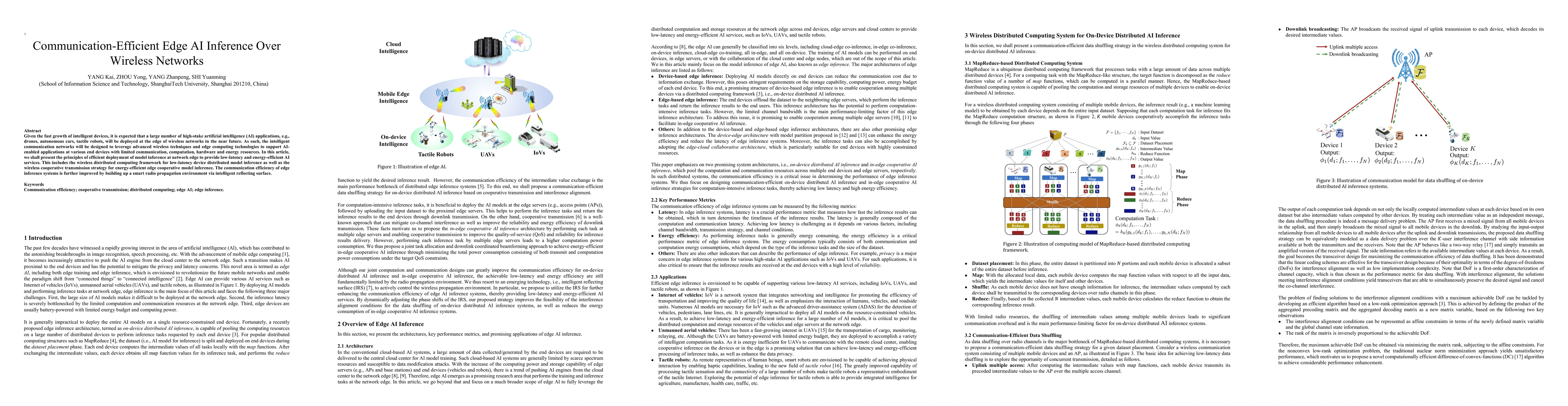 This paper discusses principles for deploying efficient edge AI inference over wireless networks, focusing on low-latency and energy-efficient AI services through distributed computing frameworks and cooperative transmission strategies, enhanced by intelligent reflecting surfaces to optimize communication efficiency.