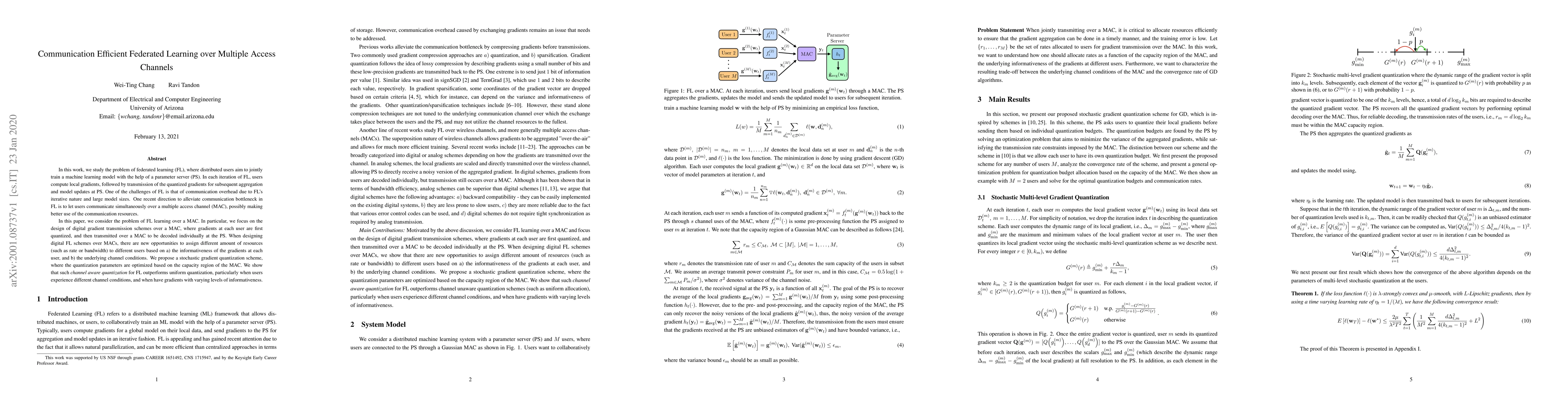 This paper explores federated learning (FL) over multiple access channels (MAC) to reduce communication overhead. It proposes a stochastic gradient quantization scheme optimized for the MAC's capacity region, demonstrating that channel-aware quantization outperforms uniform quantization, especially under varying channel conditions and gradient informativeness.