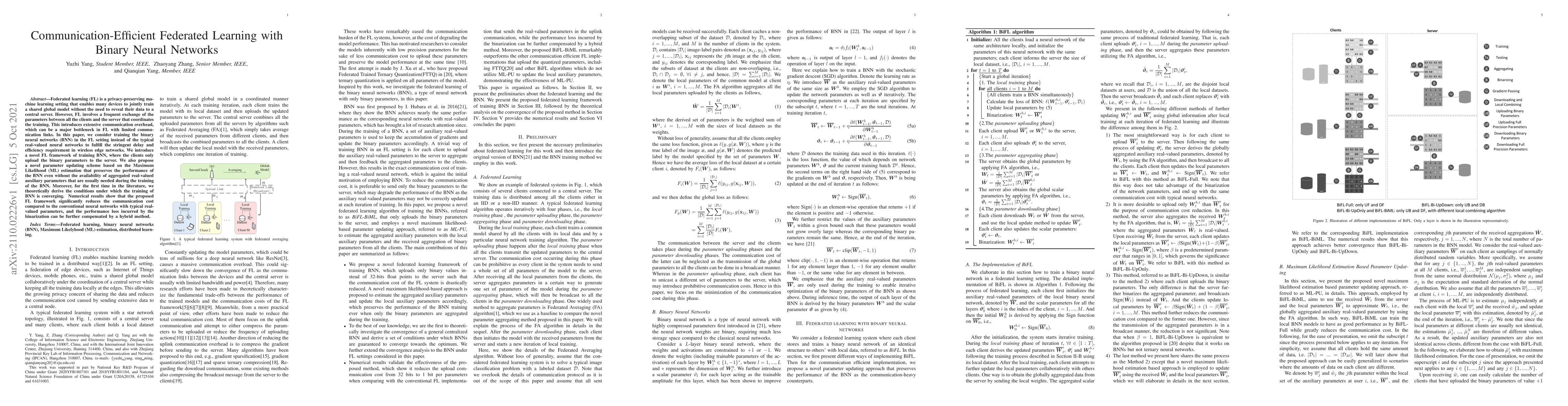 This paper proposes a communication-efficient federated learning framework for training binary neural networks (BNN) to reduce the communication overhead in wireless edge networks. The framework enables clients to upload only binary parameters, significantly reducing communication costs while maintaining performance through a novel Maximum Likelihood estimation-based parameter updating scheme.