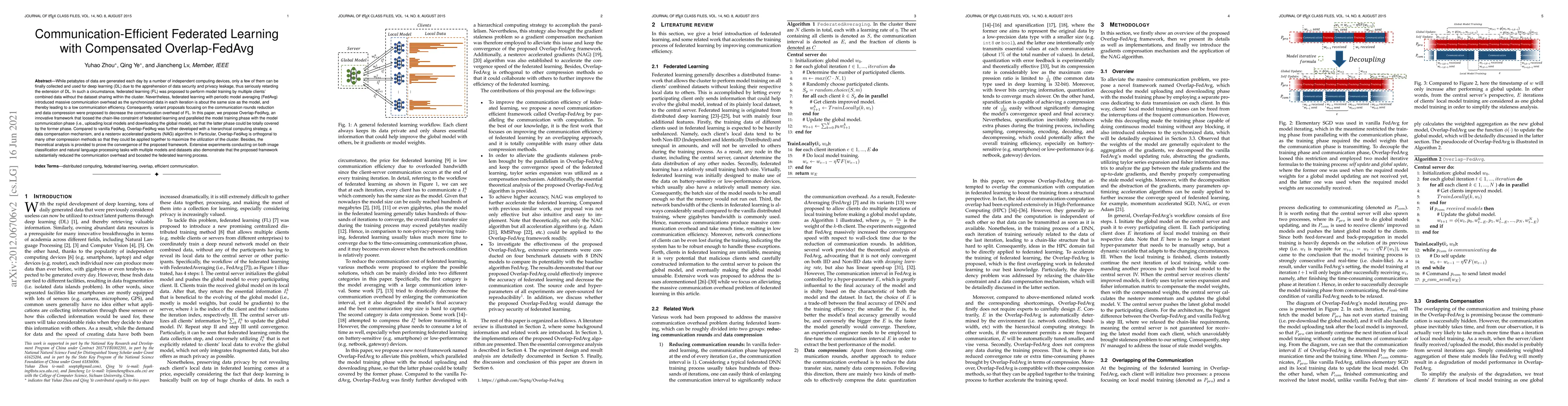 This paper proposes Overlap-FedAvg to enhance communication efficiency in federated learning by overlapping model training with data uploading/downloading. It introduces a hierarchical computing strategy, data compensation, and Nesterov accelerated gradients, and demonstrates significant improvements in federated learning performance through theoretical analysis and extensive experiments.