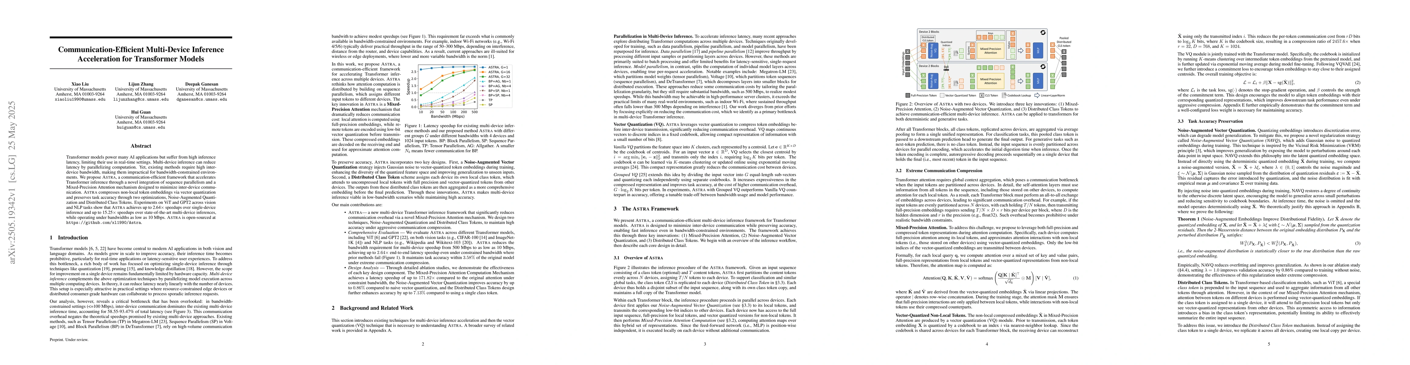 A new framework called ASTRA accelerates Transformer inference on multiple devices while reducing latency and bandwidth consumption, achieving up to 15.25X speedups over state-of-the-art methods.