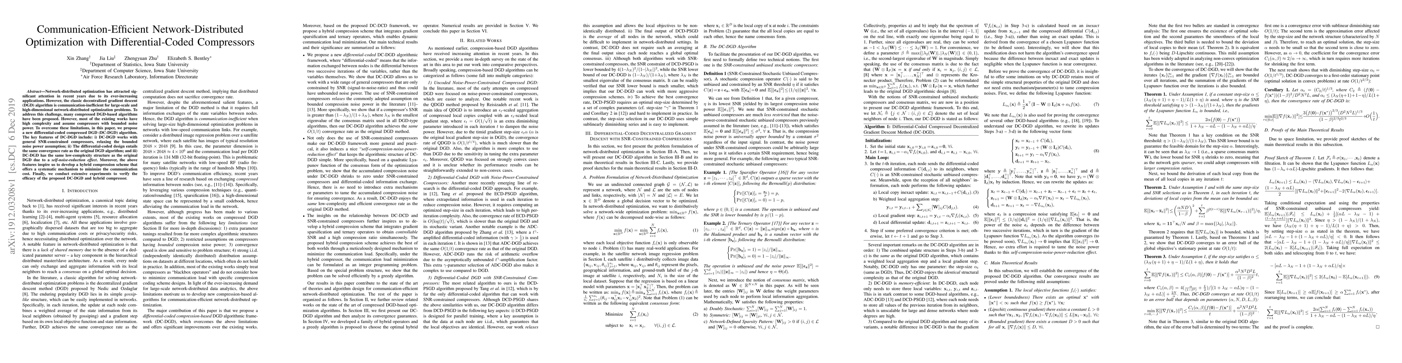 Network-distributed optimization has attracted significant attention in recent years due to its ever-increasing applications. However, the classic decentralized gradient descent (DGD) algorithm is communication-inefficient for large-scale and high-dimensional network-distributed optimization problems. To address this challenge, many compressed DGD-based algorithms have been proposed. However, most of the existing works have high complexity and assume compressors with bounded noise power. To overcome these limitations, in this paper, we propose a new differential-coded compressed DGD (DC-DGD) algorithm. The key features of DC-DGD include: i) DC-DGD works with general SNR-constrained compressors, relaxing the bounded noise power assumption; ii) The differential-coded design entails the same convergence rate as the original DGD algorithm; and iii) DC-DGD has the same low-complexity structure as the original DGD due to a {\em self-noise-reduction effect}. Moreover, the above features inspire us to develop a hybrid compression scheme that offers a systematic mechanism to minimize the communication cost. Finally, we conduct extensive experiments to verify the efficacy of the proposed DC-DGD and hybrid compressor.