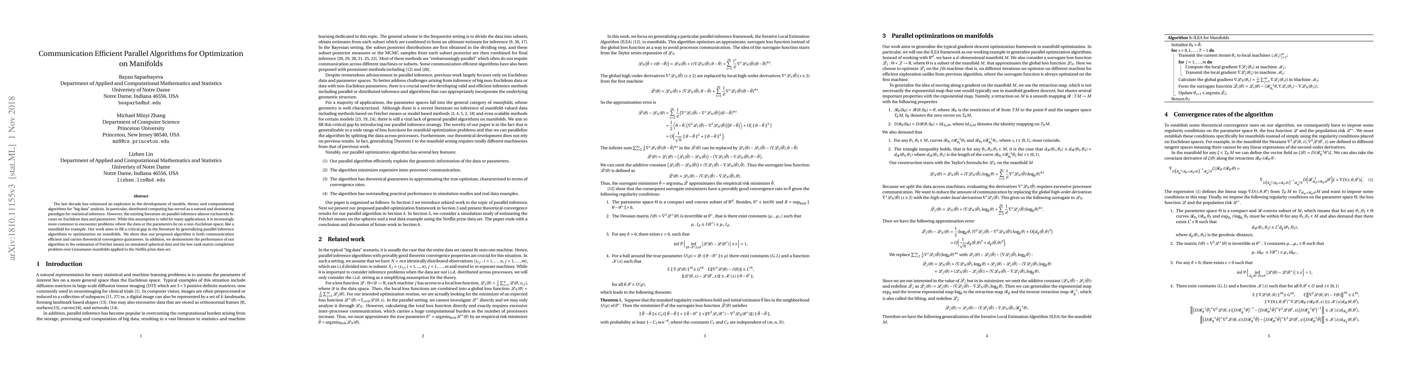 Researchers developed a new parallel algorithm to optimize on manifolds, improving communication efficiency and providing convergence guarantees for problems like estimating Fr\echem{echet} means and low-rank matrix completion.