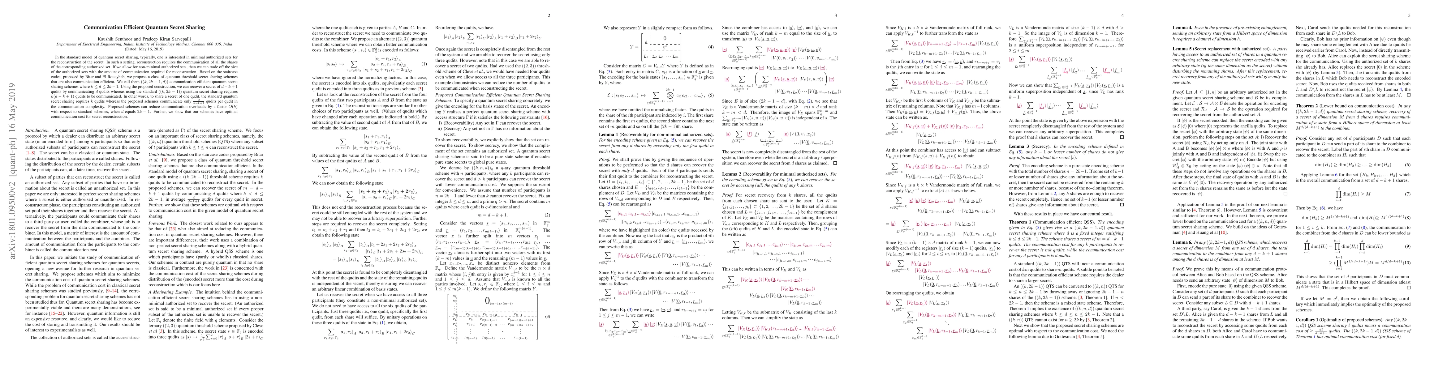 This paper proposes a class of $((k,2k-1,d))$ communication efficient quantum secret sharing schemes that reduce communication overheads by a factor $O(k)$ compared to standard schemes. These schemes utilize staircase codes to achieve optimal communication cost for secret reconstruction.