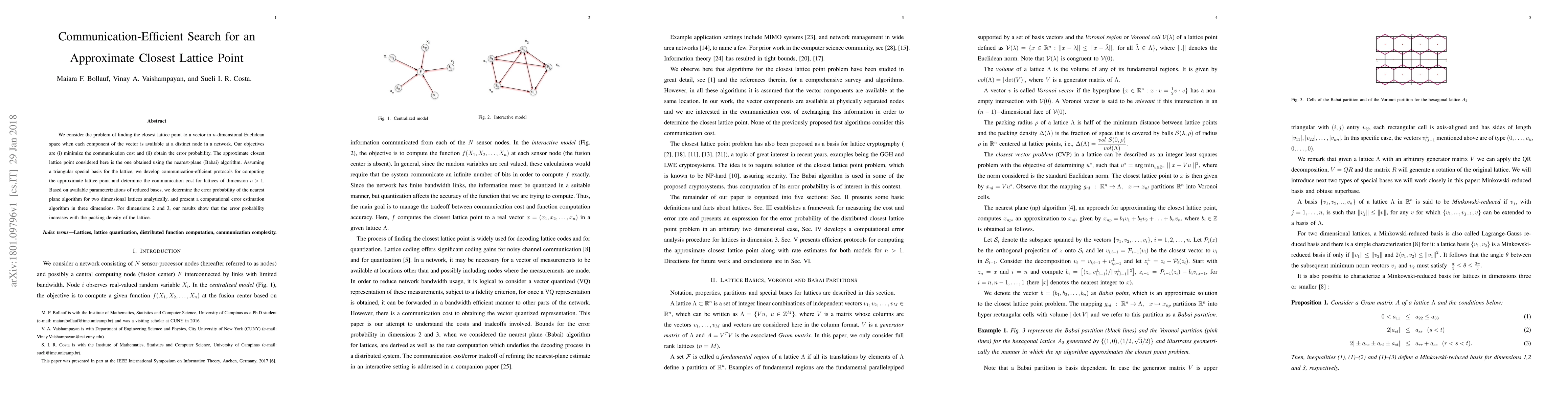 This paper develops communication-efficient protocols for finding an approximate closest lattice point in a distributed network, minimizing communication costs and determining error probabilities. It analyzes the Babai algorithm for lattices in dimensions 2 and 3, showing that error probability increases with lattice packing density.