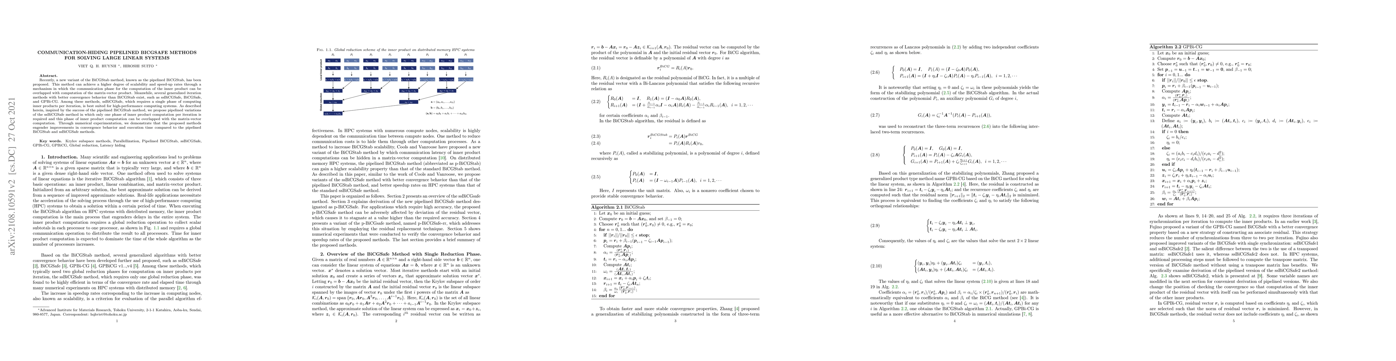Researchers proposed variations of ssBiCGSafe method to improve convergence and execution time in large linear system solvers, leveraging pipelining to overlap inner product computation with matrix-vector product.