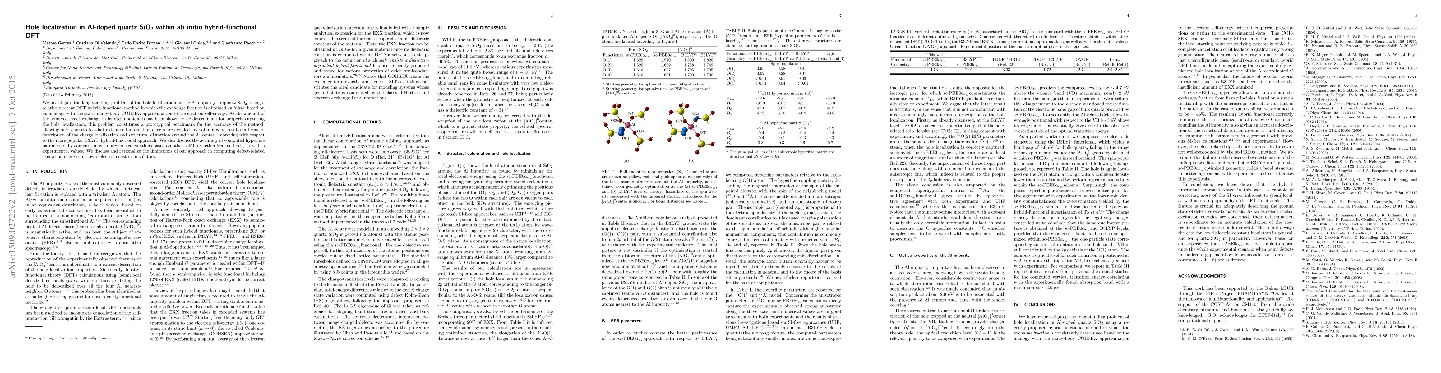 Researchers used a new DFT hybrid-functional method to study hole localization in Al-doped quartz SiO2, achieving accurate results for charge localization and structural distortion around the Al center.