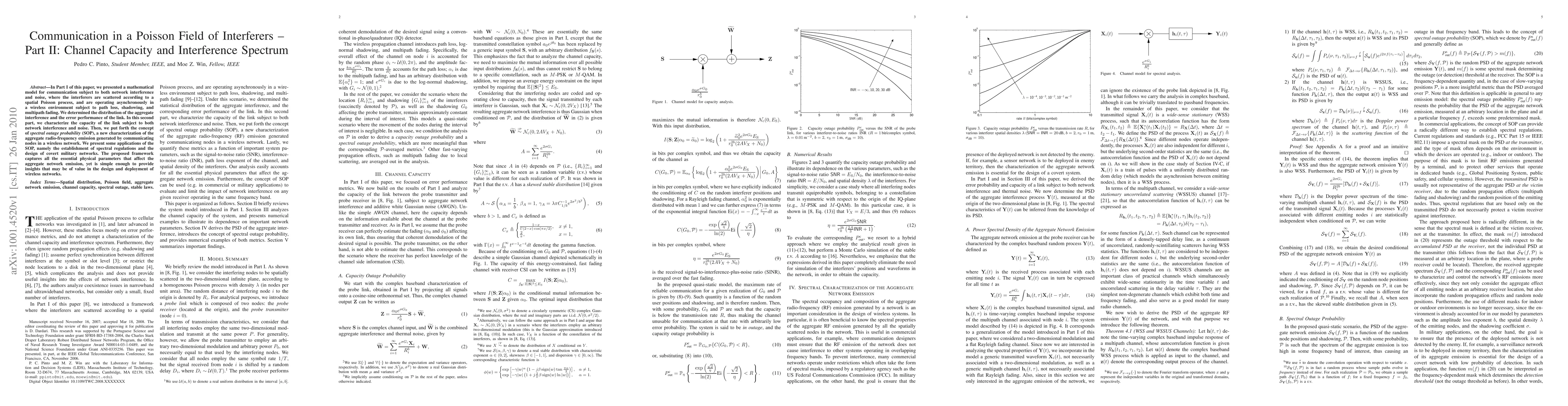 This paper extends a mathematical model for communication in a Poisson field of interferers, focusing on link capacity and the interference spectrum. It introduces spectral outage probability (SOP) to characterize aggregate radio-frequency emissions, with applications in spectral regulation and covert network design.