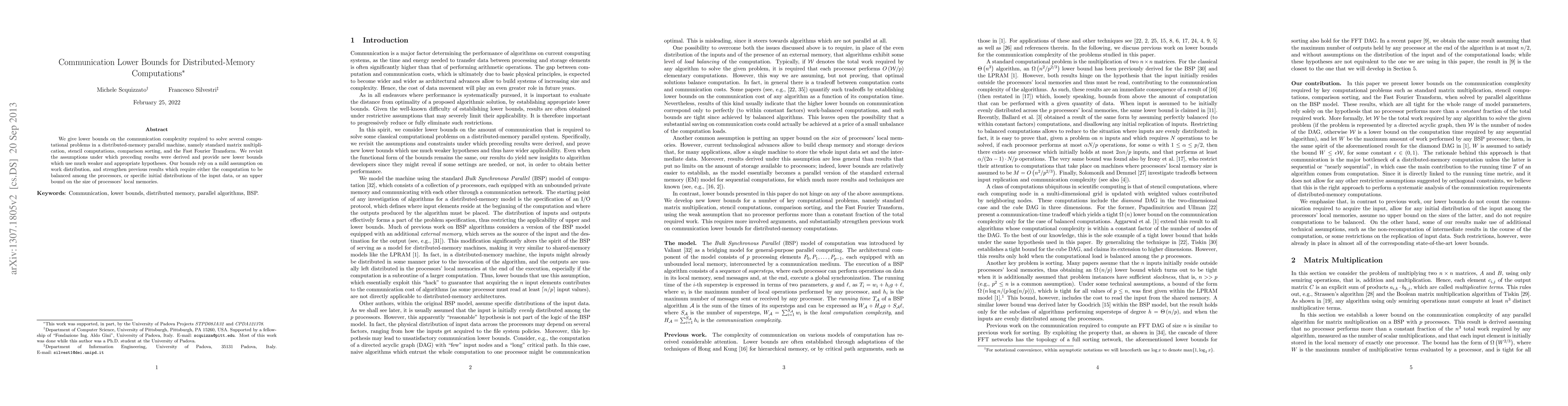 This paper establishes new lower bounds on communication complexity for distributed-memory parallel computations, including matrix multiplication and sorting, under weaker assumptions than previous results. It strengthens prior bounds by eliminating the need for balanced computation or specific input data distributions.