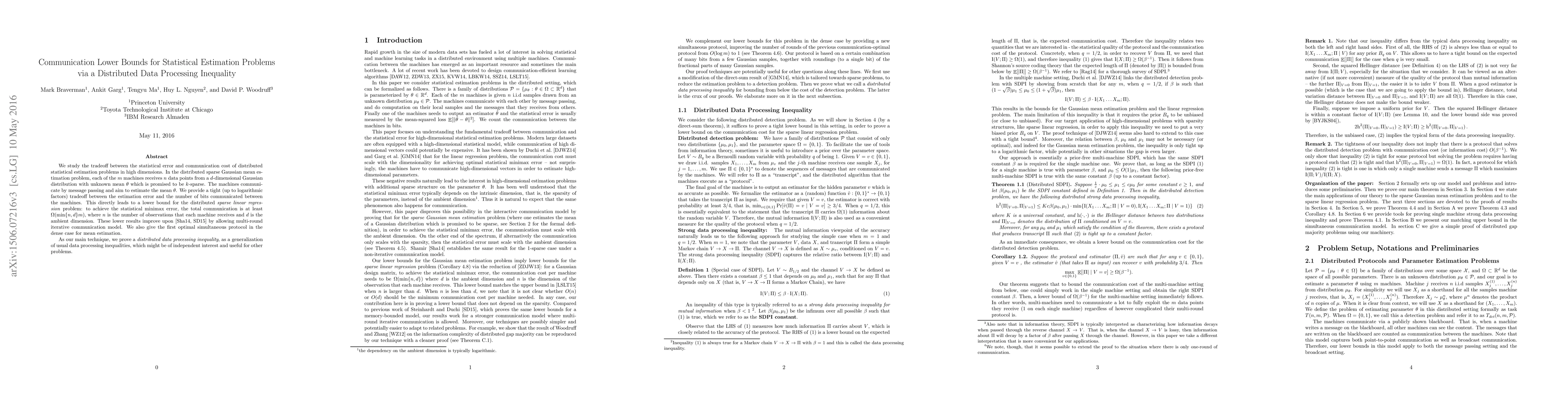 This research paper establishes a tight tradeoff between statistical error and communication cost for distributed statistical estimation problems in high dimensions, leading to lower bounds for sparse linear regression problems.