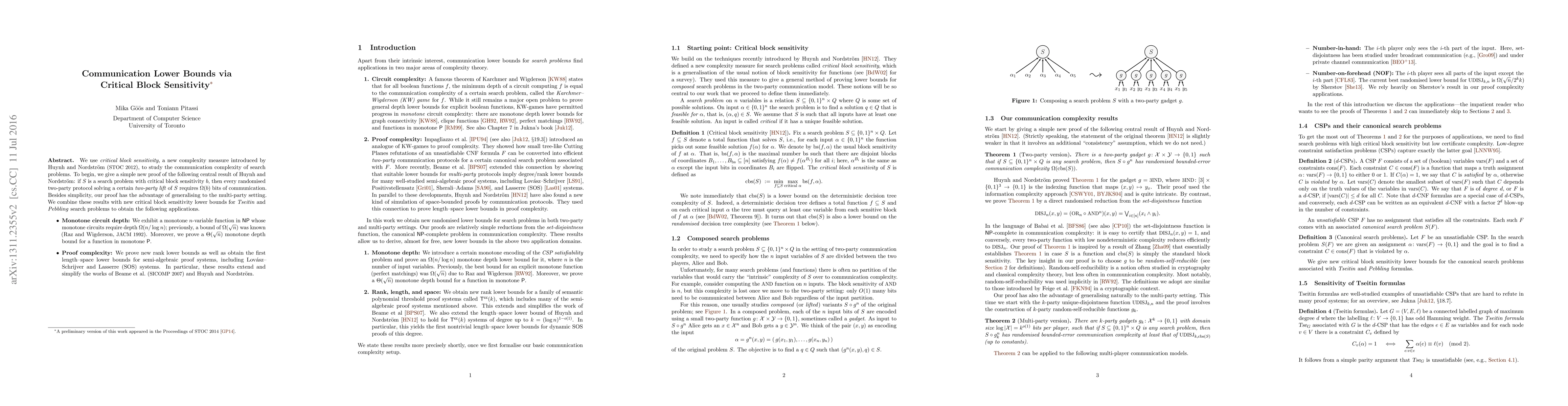 The paper introduces a new proof technique for communication lower bounds using critical block sensitivity, generalizing previous results to the multi-party setting.