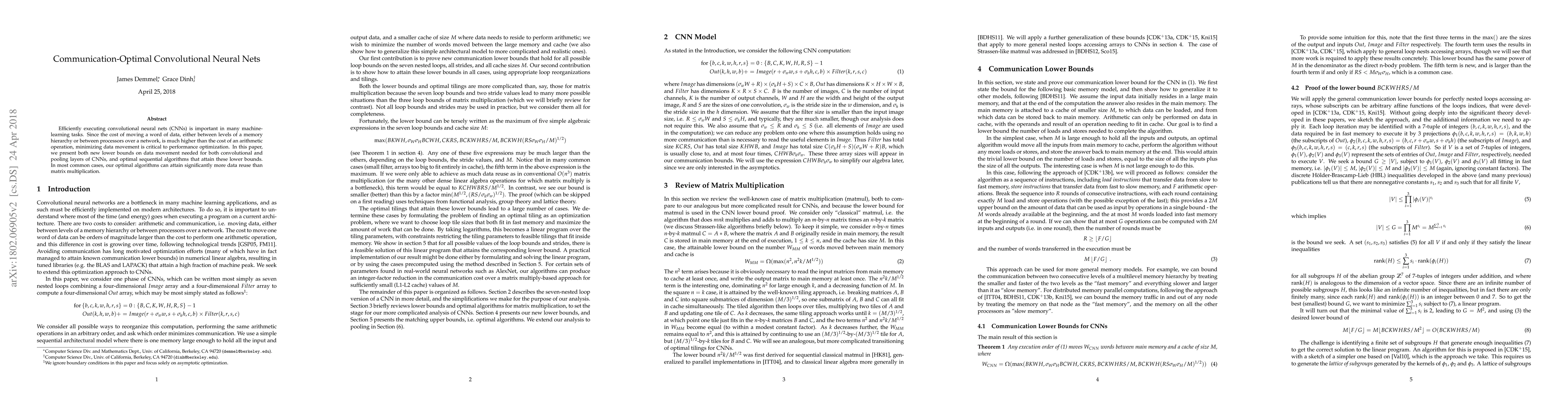 This paper establishes new lower bounds on data movement for convolutional neural networks (CNNs) and presents optimal sequential algorithms that achieve these bounds, significantly improving data reuse compared to matrix multiplication.