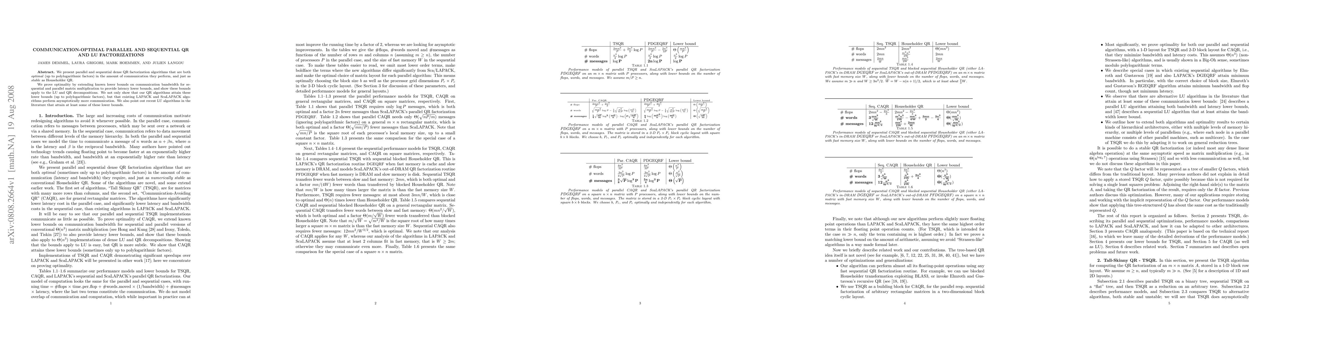 We present parallel and sequential dense QR factorization algorithms that are both optimal (up to polylogarithmic factors) in the amount of communication they perform, and just as stable as Householder QR. We prove optimality by extending known lower bounds on communication bandwidth for sequential and parallel matrix multiplication to provide latency lower bounds, and show these bounds apply to the LU and QR decompositions. We not only show that our QR algorithms attain these lower bounds (up to polylogarithmic factors), but that existing LAPACK and ScaLAPACK algorithms perform asymptotically more communication. We also point out recent LU algorithms in the literature that attain at least some of these lower bounds.