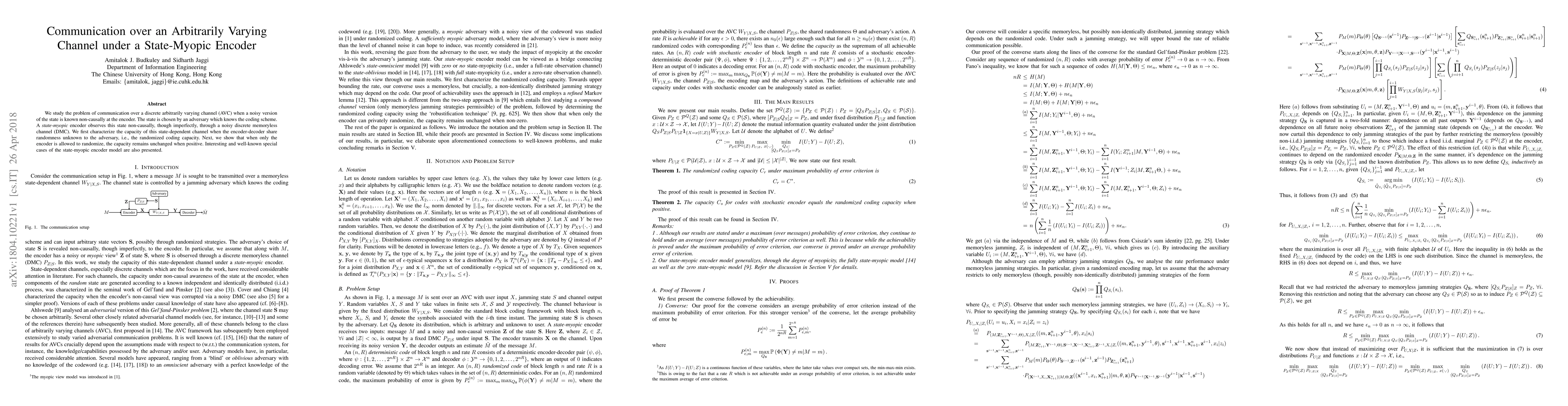 We study the problem of communication over a discrete arbitrarily varying channel (AVC) when a noisy version of the state is known non-causally at the encoder. The state is chosen by an adversary which knows the coding scheme. A state-myopic encoder observes this state non-causally, though imperfectly, through a noisy discrete memoryless channel (DMC). We first characterize the capacity of this state-dependent channel when the encoder-decoder share randomness unknown to the adversary, i.e., the randomized coding capacity. Next, we show that when only the encoder is allowed to randomize, the capacity remains unchanged when positive. Interesting and well-known special cases of the state-myopic encoder model are also presented.
