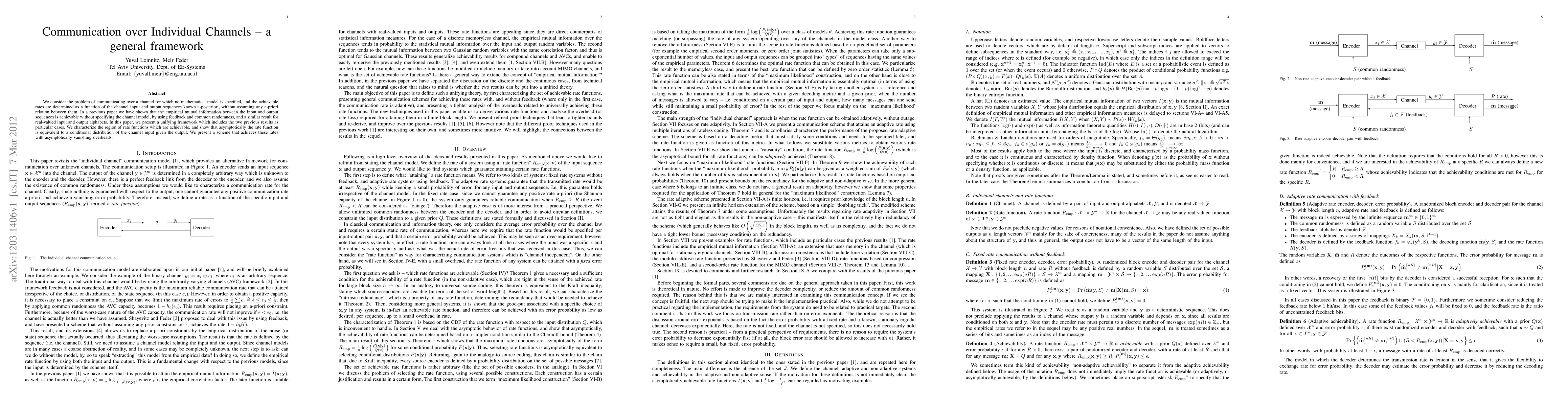 We consider the problem of communicating over a channel for which no mathematical model is specified, and the achievable rates are determined as a function of the channel input and output sequences known a-posteriori, without assuming any a-priori relation between them. In a previous paper we have shown that the empirical mutual information between the input and output sequences is achievable without specifying the channel model, by using feedback and common randomness, and a similar result for real-valued input and output alphabets. In this paper, we present a unifying framework which includes the two previous results as particular cases. We characterize the region of rate functions which are achievable, and show that asymptotically the rate function is equivalent to a conditional distribution of the channel input given the output. We present a scheme that achieves these rates with asymptotically vanishing overheads.