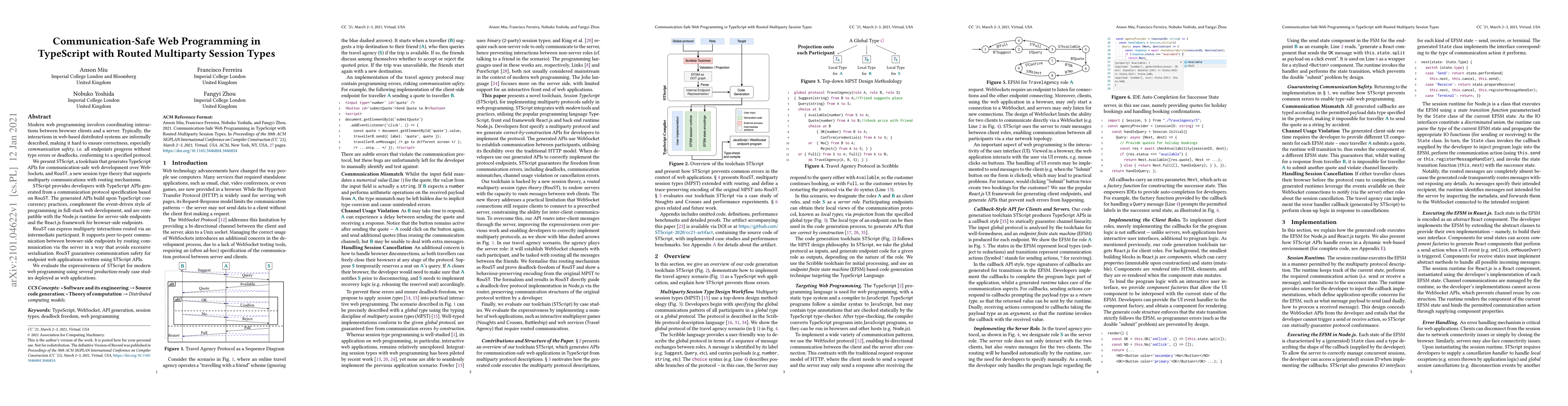 This paper introduces STScript, a toolchain for generating TypeScript APIs for communication-safe web programming over WebSockets, and RouST, a session type theory for multiparty communications with routing. RouST ensures communication safety and avoids excessive serialization, while STScript APIs are compatible with Node.js and React.js.