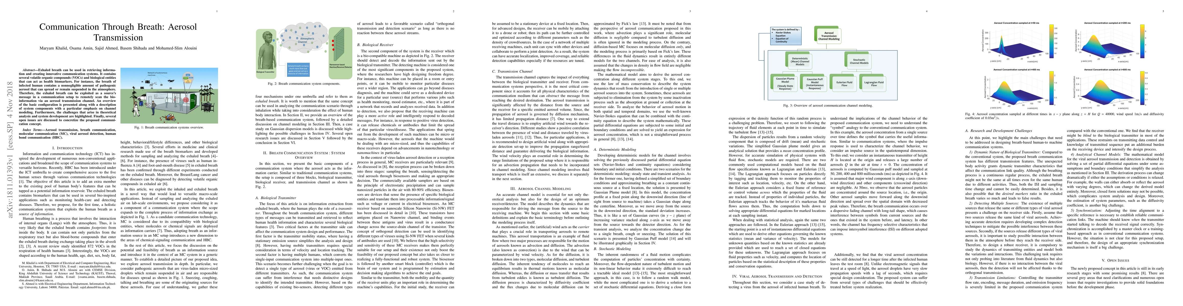 This paper explores the potential of exhaled breath as a medium for aerosol transmission in innovative communication systems, highlighting the use of volatile organic compounds and biological entities as health biomarkers. It outlines the system configuration and challenges in theoretical analysis and system development, while also discussing open issues for future research.