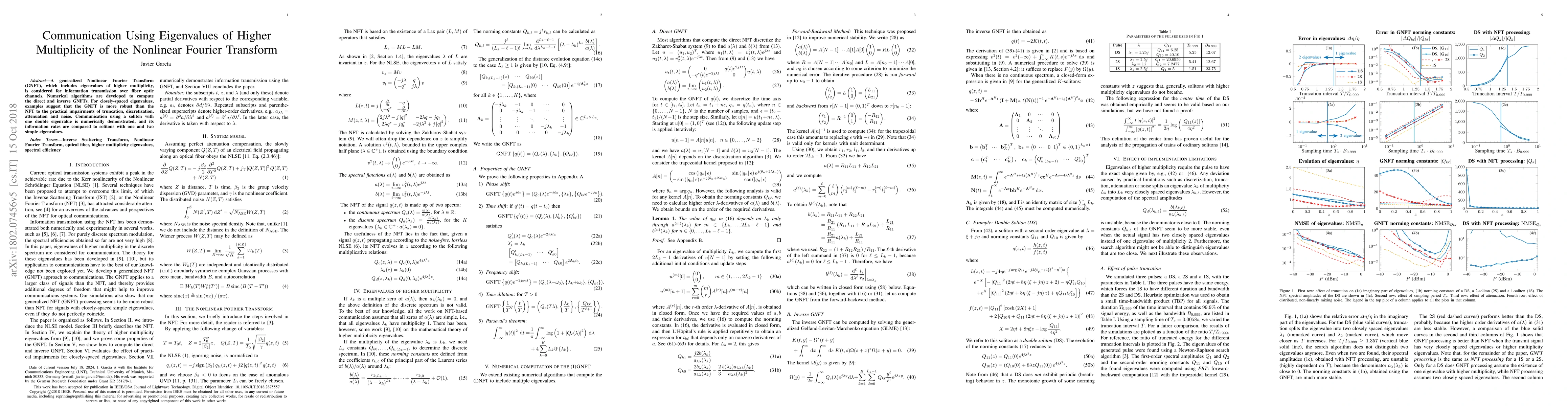 A generalized Nonlinear Fourier Transform (GNFT), which includes eigenvalues of higher multiplicity, is considered for information transmission over fiber optic channels. Numerical algorithms are developed to compute the direct and inverse GNFTs. For closely-spaced eigenvalues, examples suggest that the GNFT is more robust than the NFT to the practical impairments of truncation, discretization, attenuation and noise. Communication using a soliton with one double eigenvalue is numerically demonstrated, and its information rates are compared to solitons with one and two simple eigenvalues.