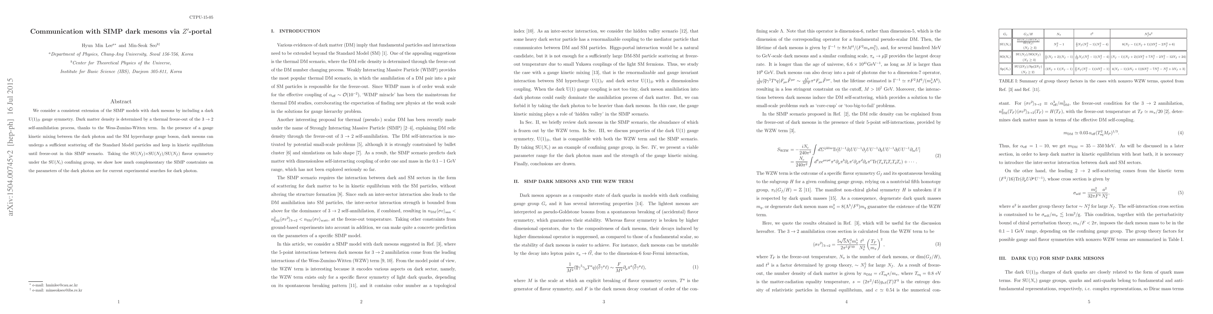 This paper extends SIMP dark matter models to include dark mesons governed by a dark U(1)_D gauge symmetry, where dark matter density is set by thermal freeze-out from $3\to2$ self-annihilation. The study explores the interaction of dark mesons with Standard Model particles via gauge kinetic mixing, maintaining kinetic equilibrium until freeze-out, and evaluates the complementary constraints on dark photon parameters in light of current experimental searches.