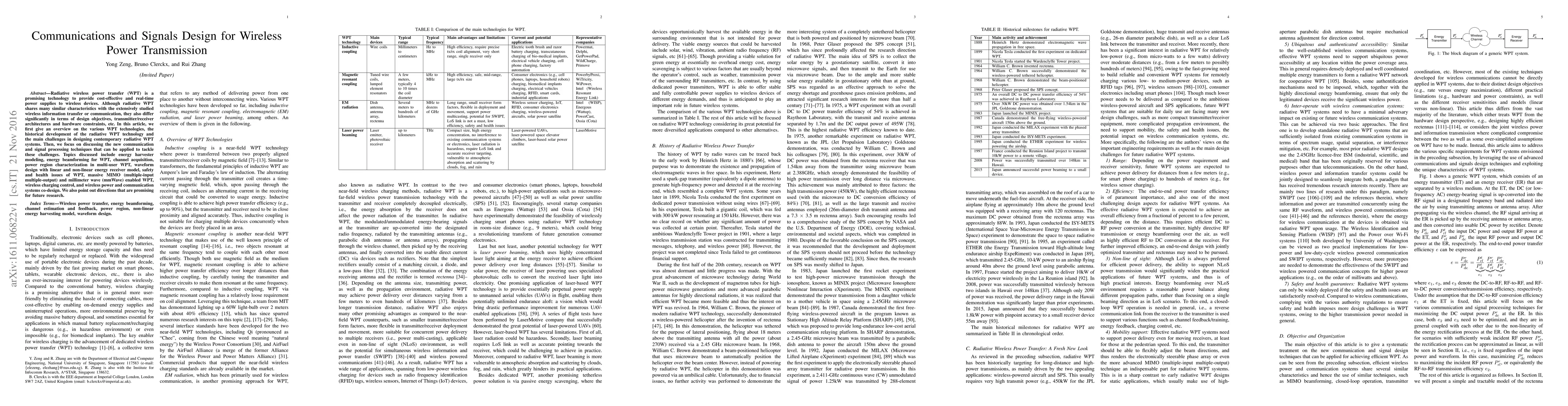 This paper reviews wireless power transfer (WPT) technologies, highlighting the unique design challenges compared to wireless communication. It discusses advanced communication and signal processing techniques, including energy beamforming, multi-user WPT, and the integration of massive MIMO and mmWave technologies, to address these challenges and proposes future research directions.