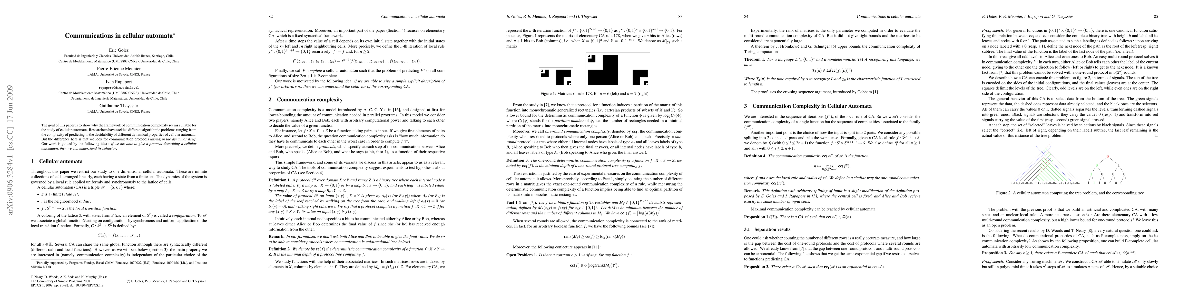 This paper explores the application of communication complexity frameworks to study cellular automata, focusing on identifying communication protocols inherent in their dynamics to better understand their behavior. The research aims to establish how communication protocols can describe and predict the complex interactions within cellular automata.