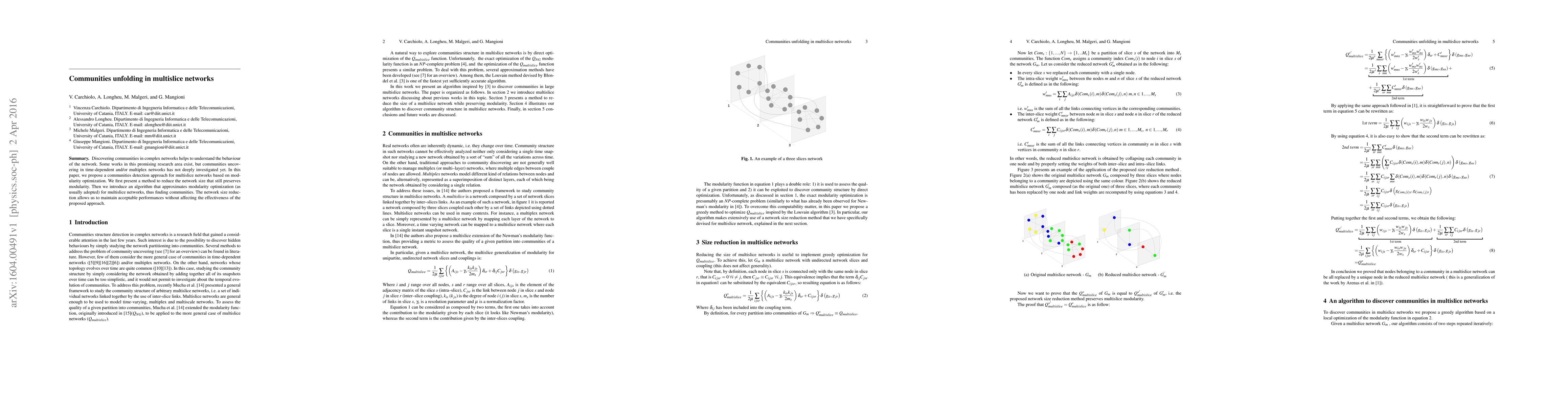 Discovering communities in complex networks helps to understand the behaviour of the network. Some works in this promising research area exist, but communities uncovering in time-dependent and/or multiplex networks has not deeply investigated yet. In this paper, we propose a communities detection approach for multislice networks based on modularity optimization. We first present a method to reduce the network size that still preserves modularity. Then we introduce an algorithm that approximates modularity optimization (as usually adopted) for multislice networks, thus finding communities. The network size reduction allows us to maintain acceptable performances without affecting the effectiveness of the proposed approach.