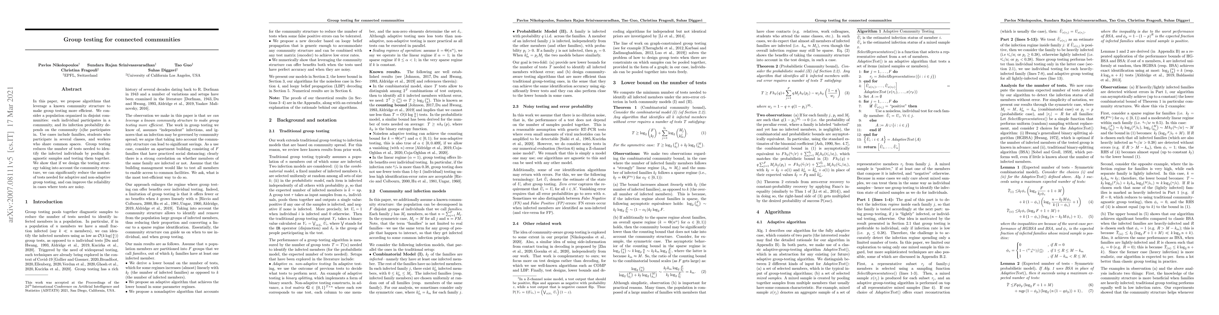 This paper proposes algorithms for group testing that leverage known community structures to enhance efficiency, reducing the number of tests needed for identifying infected individuals in populations divided into communities with varying infection probabilities.