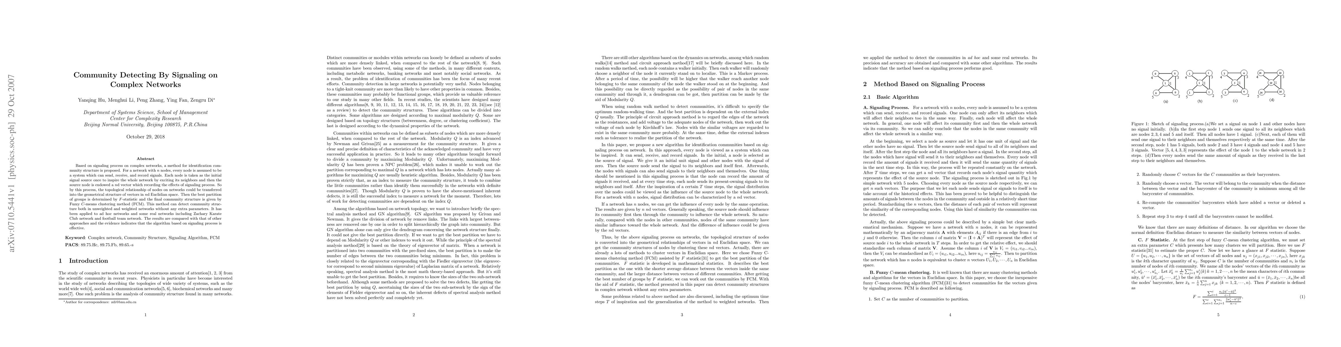 Researchers propose a new method to identify community structure in complex networks using a signaling process, which converts topological relationships into geometrical structures in Euclidean space. The algorithm is effective in detecting community structure in both unweighted and weighted networks.