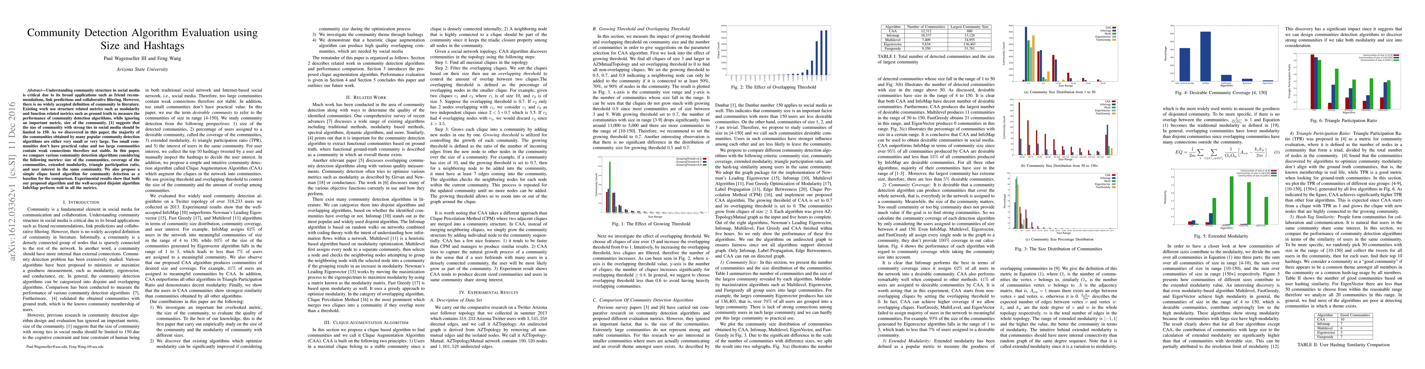 Understanding community structure in social media is critical due to its broad applications such as friend recommendations, link predictions and collaborative filtering. However, there is no widely accepted definition of community in literature. Existing work use structure related metrics such as modularity and function related metrics such as ground truth to measure the performance of community detection algorithms, while ignoring an important metric, size of the community. [1] suggests that the size of community with strong ties in social media should be limited to 150. As we discovered in this paper, the majority of the communities obtained by many popular community detection algorithms are either very small or very large. Too small communities don't have practical value and too large communities contain weak connections therefore not stable. In this paper, we compare various community detection algorithms considering the following metrics: size of the communities, coverage of the communities, extended modularity, triangle participation ratio, and user interest in the same community. We also propose a simple clique based algorithm for community detection as a baseline for the comparison. Experimental results show that both our proposed algorithm and the well-accepted disjoint algorithm InfoMap perform well in all the metrics.