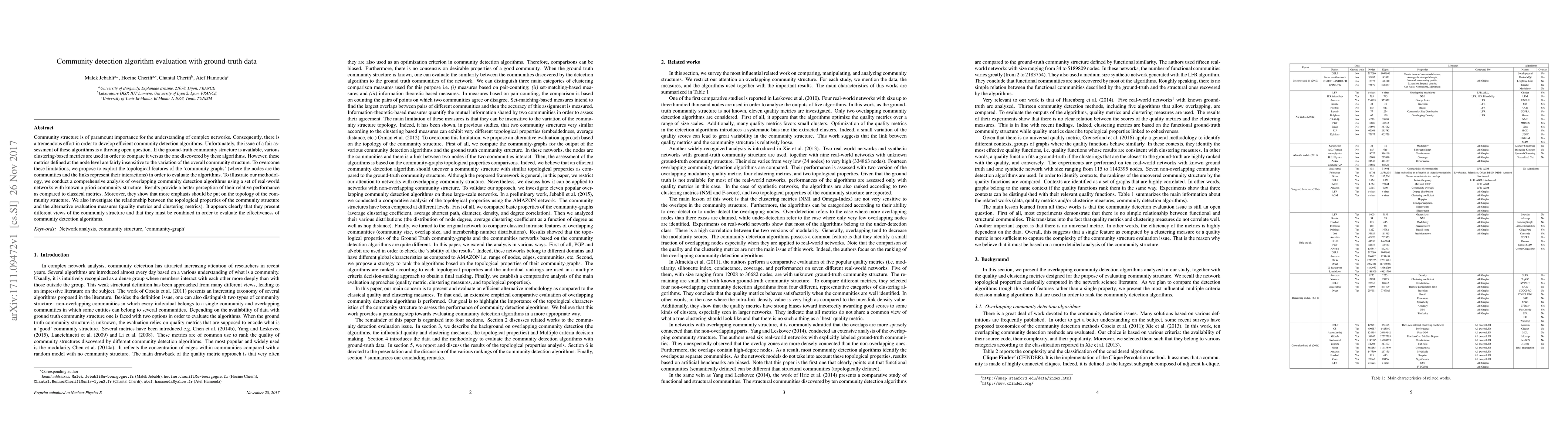 This paper proposes a novel evaluation method for community detection algorithms using topological features of 'community graphs' instead of traditional node-level metrics. The study demonstrates that these new methods provide a more nuanced understanding of algorithm performance compared to conventional metrics, highlighting the importance of community structure topology.