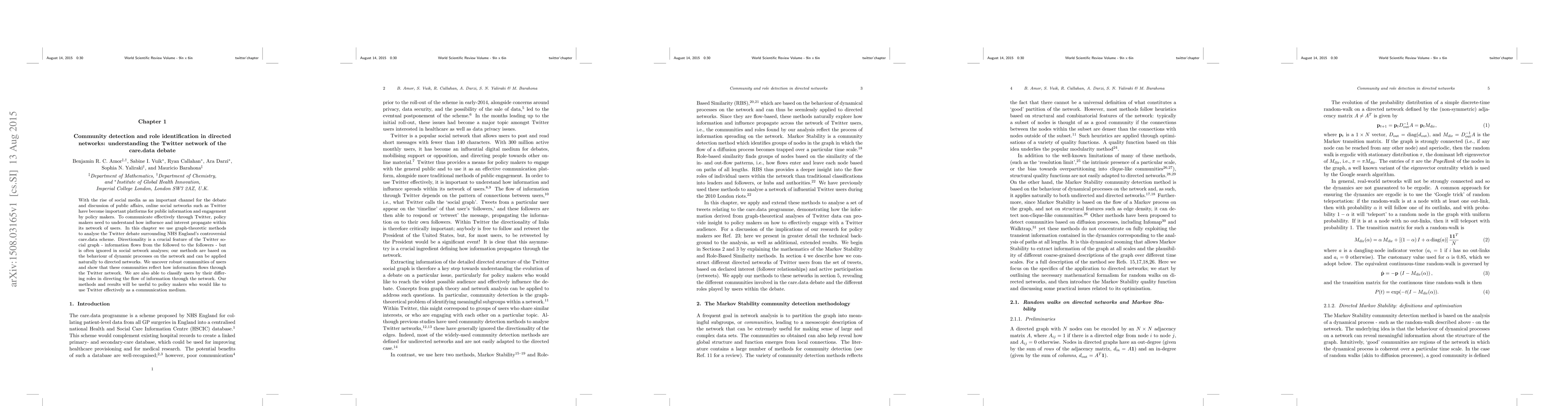 Researchers analyzed Twitter data on the care.data debate to identify communities of users and classify their roles in directing information flow. They developed a method to study directed networks, which can help policy makers use Twitter effectively for communication.