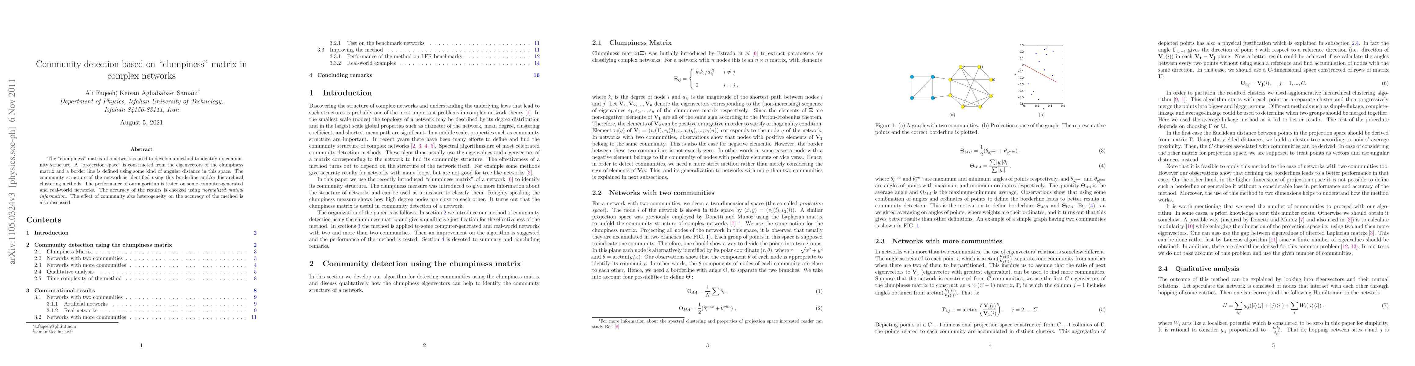 The "clumpiness" matrix of a network is used to develop a method to identify its community structure. A "projection space" is constructed from the eigenvectors of the clumpiness matrix and a border line is defined using some kind of angular distance in this space. The community structure of the network is identified using this borderline and/or hierarchical clustering methods. The performance of our algorithm is tested on some computer-generated and real-world networks. The accuracy of the results is checked using normalized mutual information. The effect of community size heterogeneity on the accuracy of the method is also discussed.