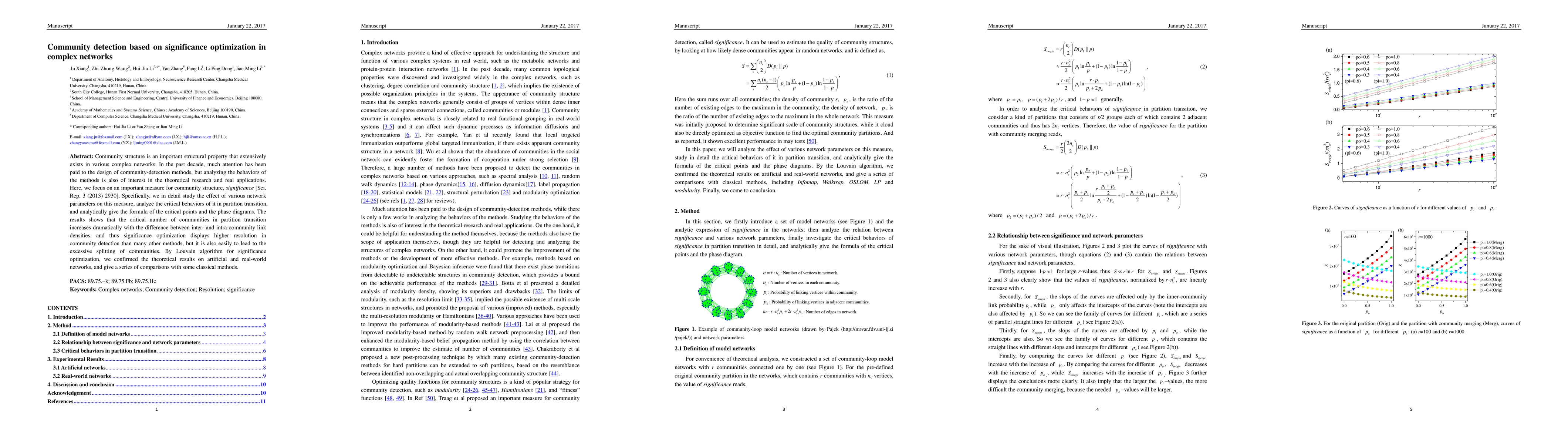 This paper explores community detection in complex networks using significance optimization, analyzing how network parameters affect this measure. It finds that significance optimization offers higher resolution but risks excessive community splitting, validated through the Louvain algorithm on both artificial and real-world networks.
