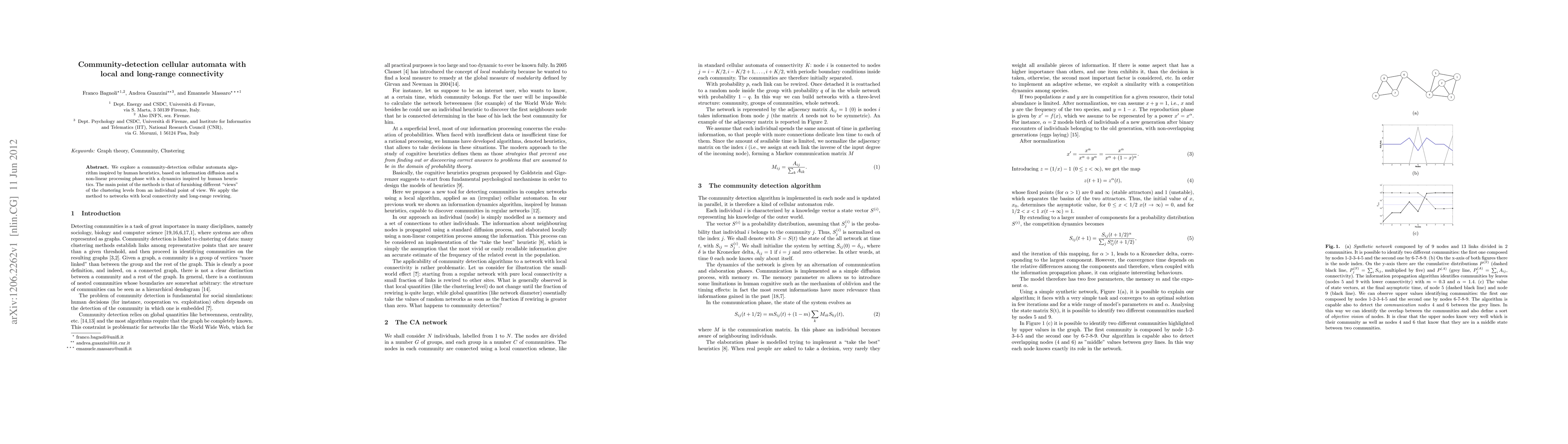 We explore a community-detection cellular automata algorithm inspired by human heuristics, based on information diffusion and a non-linear processing phase with a dynamics inspired by human heuristics. The main point of the methods is that of furnishing different "views" of the clustering levels from an individual point of view. We apply the method to networks with local connectivity and long-range rewiring.